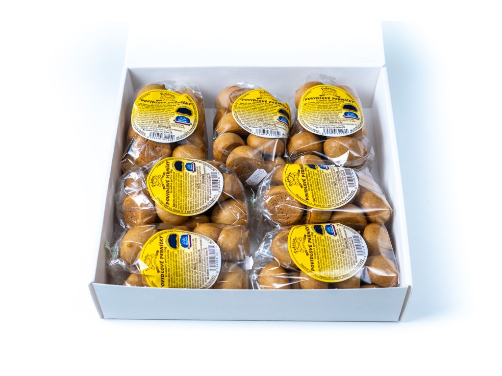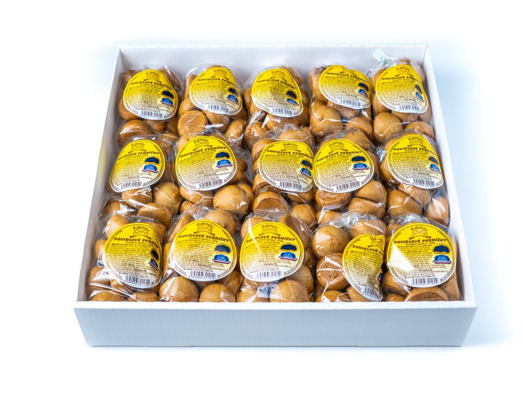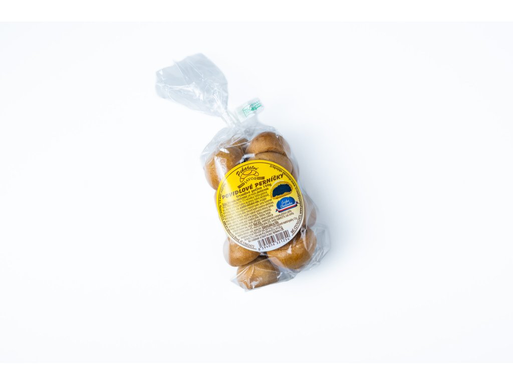 Základ: žitná mouka, pšeničná mouka hladká, cukr moučka, tuk (částečně ztužené rostlinné tuky a oleje, voda, odstředěné mléko, emulgátory E322, E471, konzervant E202, aroma, antioxidanty E320, E310, kyselina citronová E330, barvivo E160a), med, vejce, perníkové koření, invertní sirup, jedlá soda, kakao, badyán